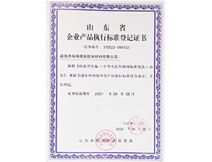 企業產品執行標準登記證書